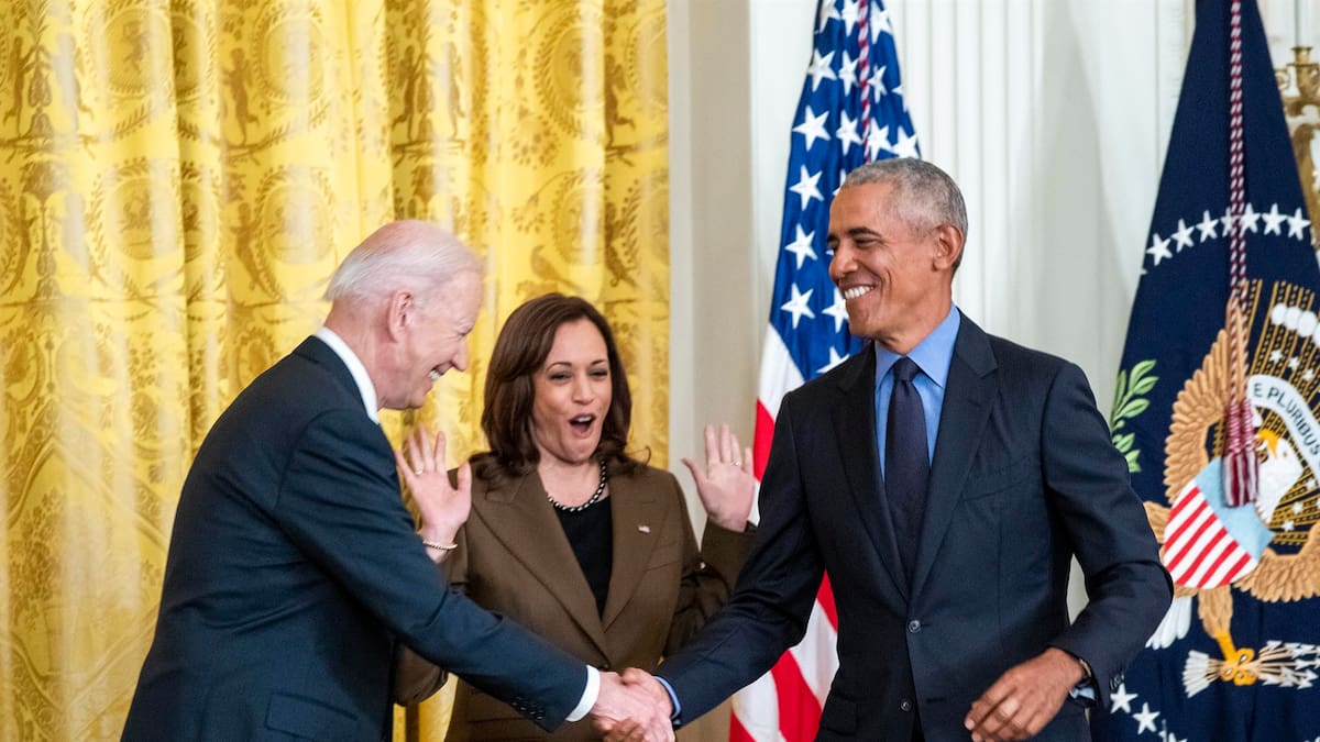 Más de cinco años después de pasarle el relevo a Donald Trump, Obama entró con aire triunfal en la misma sala de la Casa Blanca en la que protagonizó tantos actos durante sus ocho años de mandato, y volvió a acercarse al podio presidencial en medio de una larguísima ovación.