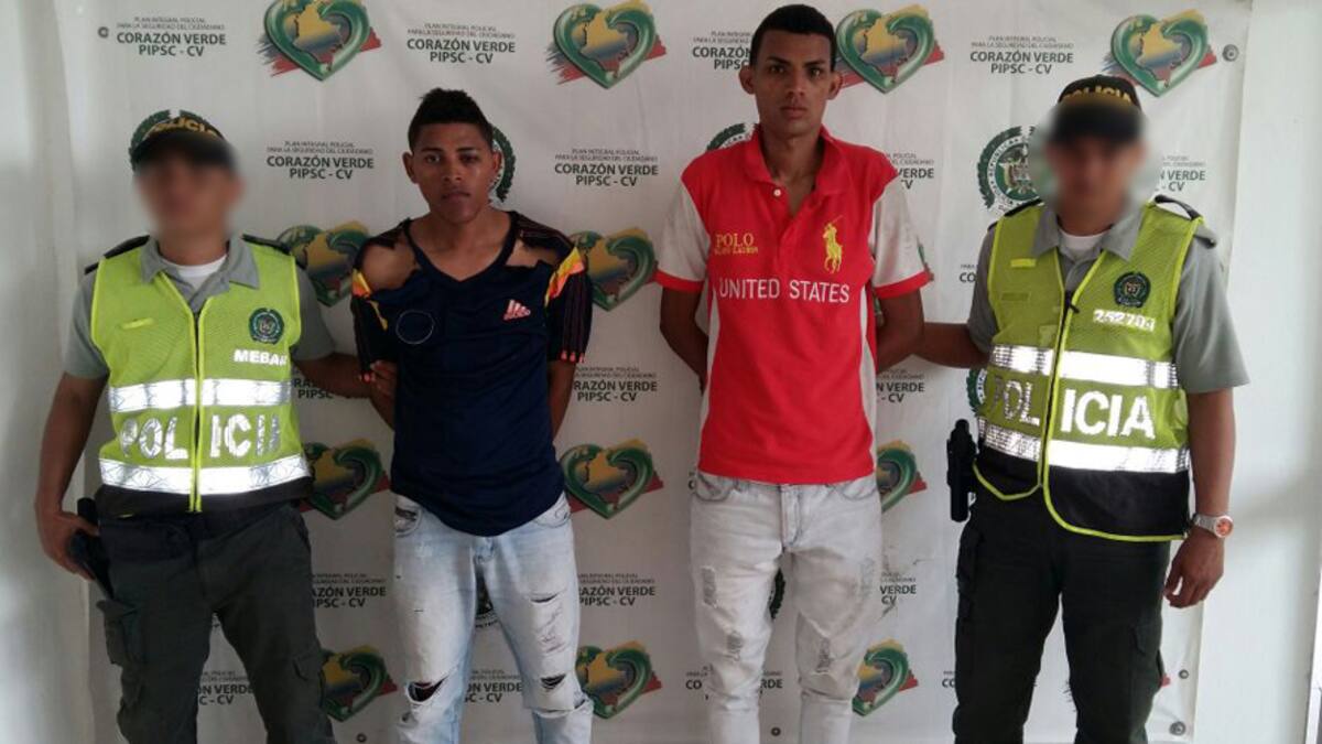 La Policía Metropolitana de Barraquilla reportó la captura de dos jóvenes identificados como César Andrés Mercado De los Reyes, de 24 años, y Kevin Gabriel Bolívar Gómez, de 23, quienes, con una pistola de balines, intimidaron a una ciudadana para despojarla de su celular.