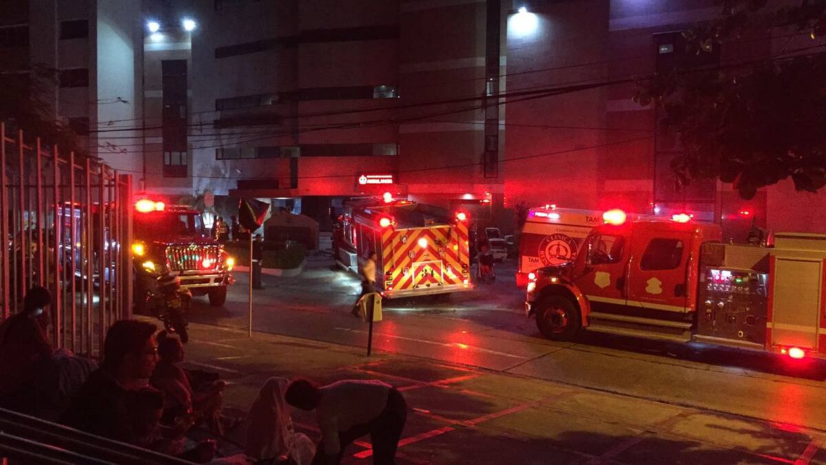 Tras la emergencia, personal del Cuerpo de Bomberos evacúo a los pacientes del cuarto y quinto piso del edificio.