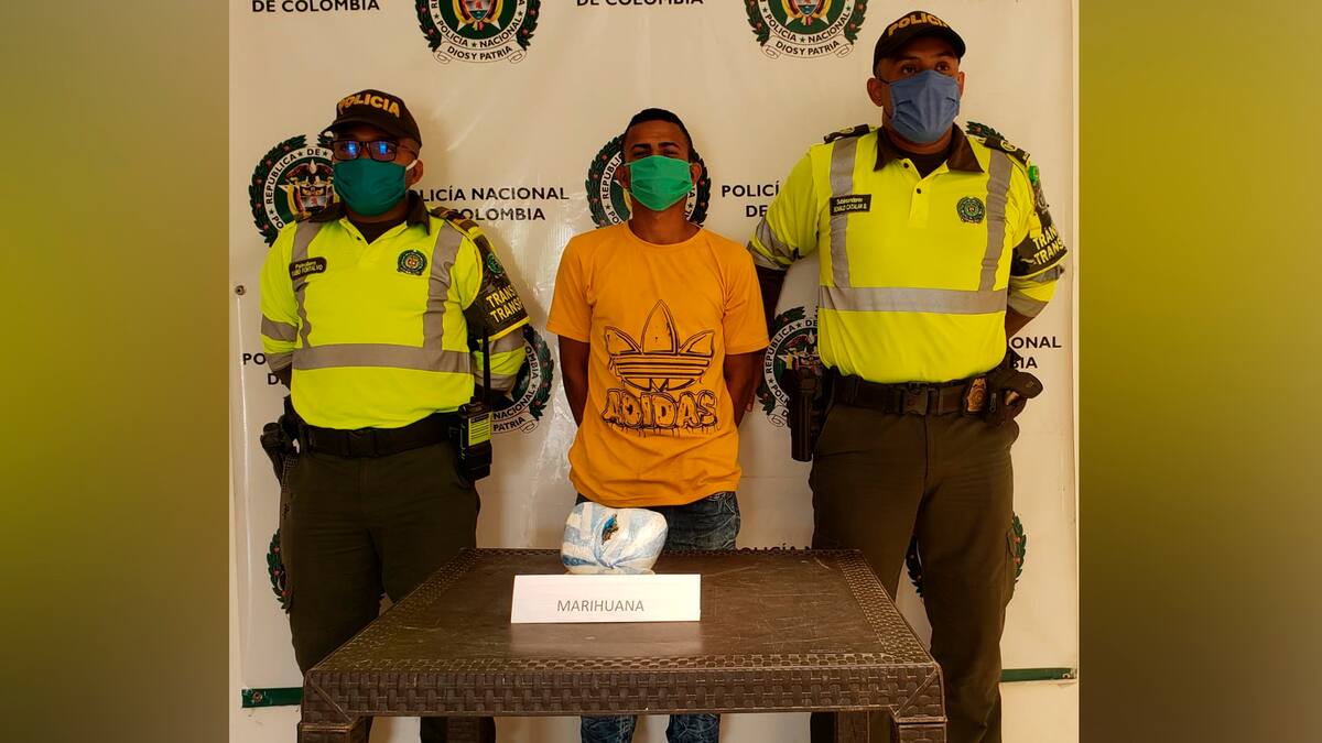 Los agentes hallaron en un bolso que llevaba escondidos 500 gramos de marihuana, por lo que de inmediato le fueron leídos sus derechos como persona capturada y dejada a disposición de la Fiscalía de Sabanalarga por el delito de fabricación, tráfico y/o porte de estupefacientes.
