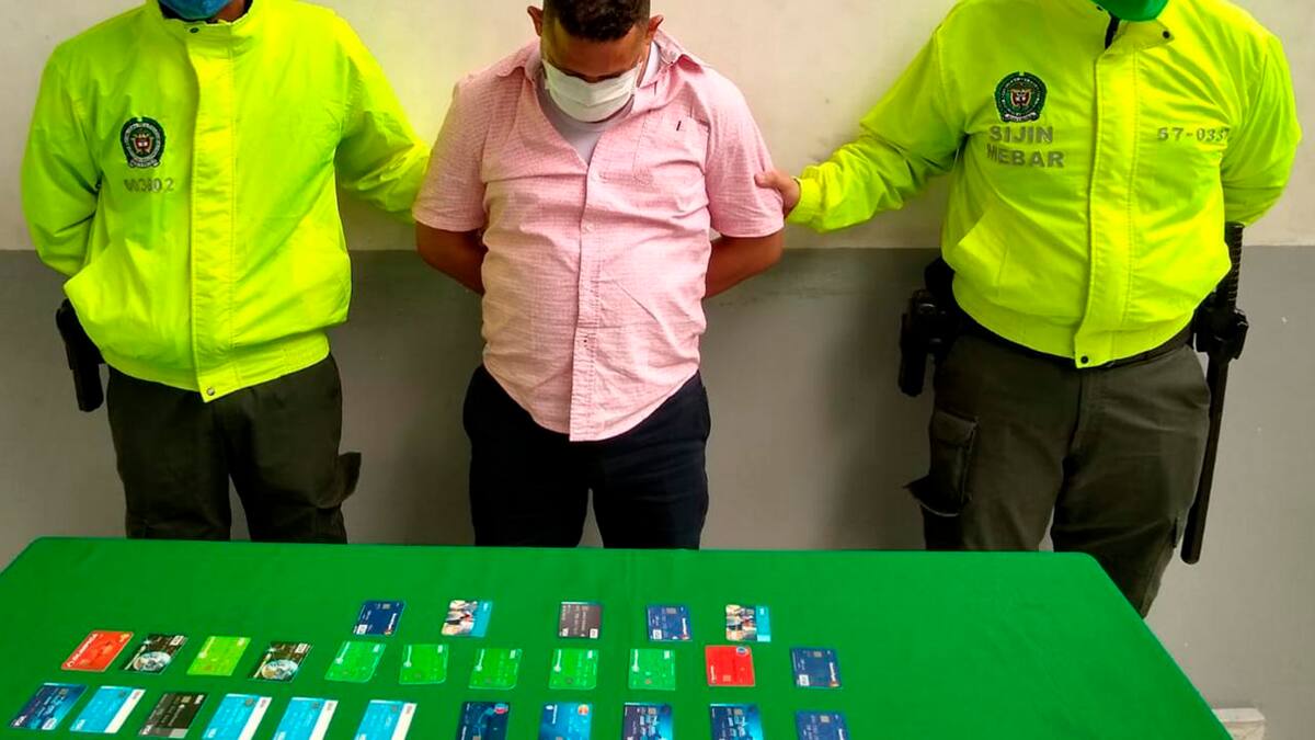 Un presunto delincuente informático, identificado por la Policía como Didier Enrique Suárez San Martín, 36 años, residente en el barrio Carrizal, fue capturado en la calle 47 con carrera 3sur esquina, barrio Ciudadela 20 de Julio, en Barranquilla, cuando se transportaba en un taxi con 27 tarjetas débito de diferentes entidades bancarias.