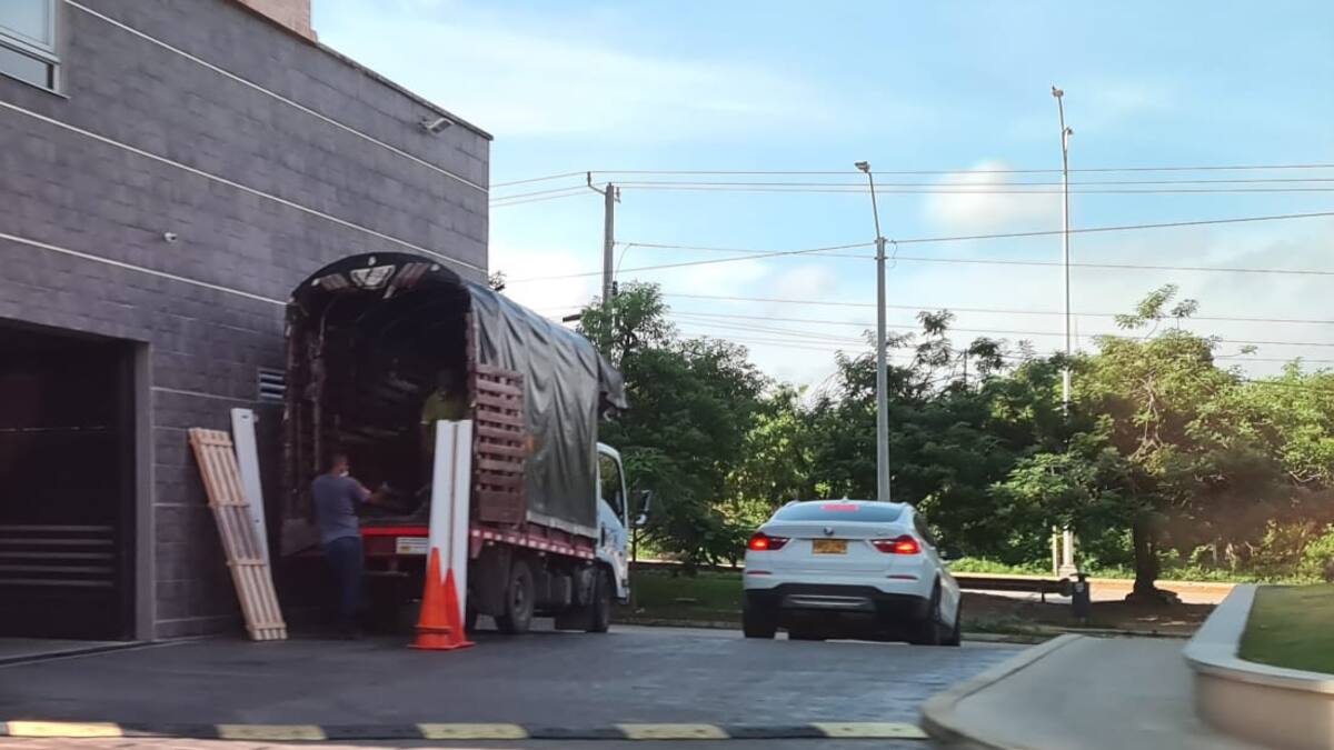 A las afueras del edificio La Ría en el norte de Barranquilla, se observó un camión de mudanzas que transportaría los enseres de los involucrados en la agresión.