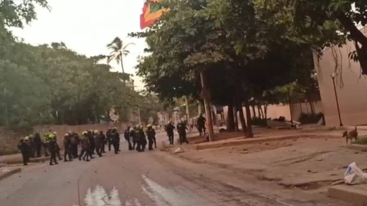 'Sobre la calle 30 con carrera primera, se reunieron aproximadamente 200 que hacen desplazamiento sobre el bulevar Simón Bolívar y llegan hasta lo que se conoce como la rotonda de la bandera. Después intentan ingresar a las instalaciones antiguas de la escuela de Policía. Allí hacen lanzamiento de piedras y bombas molotov, por lo que hubo la necesidad de Intervenir', detalló Rosero.