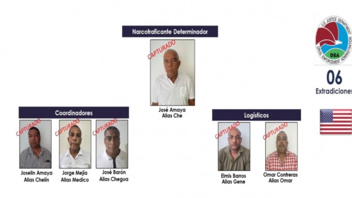 La Policía Antinarcóticos, en coordinación con la Fiscalía y la DEA logró la captura de seis personas, de las cuales tres son integrantes de una misma familia, quienes son solicitadas con fines de extradición por los Estados Unidos, por traficar cocaína a ese país.