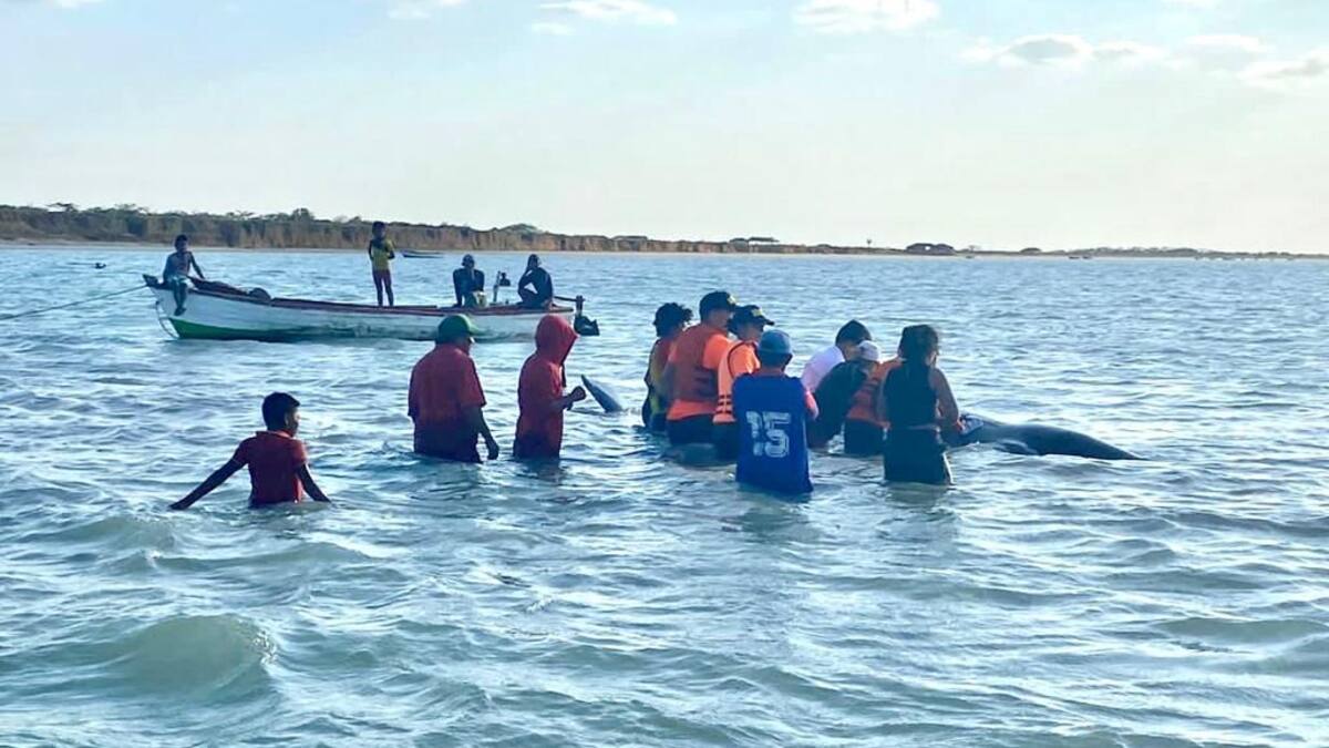 Este martes, 28 de febrero, la Dirección General Marítima (Dimar), a través de la Capitanía de Puerto Bolívar y Corpoguajira, anunció el rescate de un ballenato que había encallado en el sector de ‘El Carbón’, Uribia.