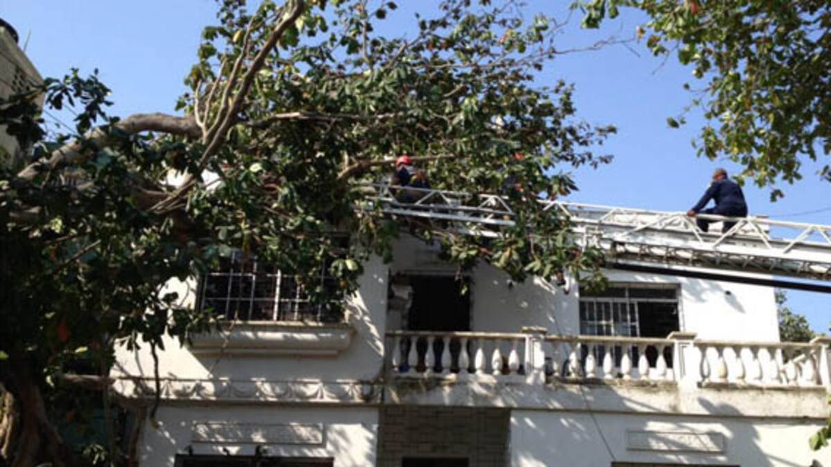 A las 3 a.m. de este sábado, fuertes brisas tumbaron un árbol ubicado en la terraza de una vivienda, en la carrera 58 con calle 75.