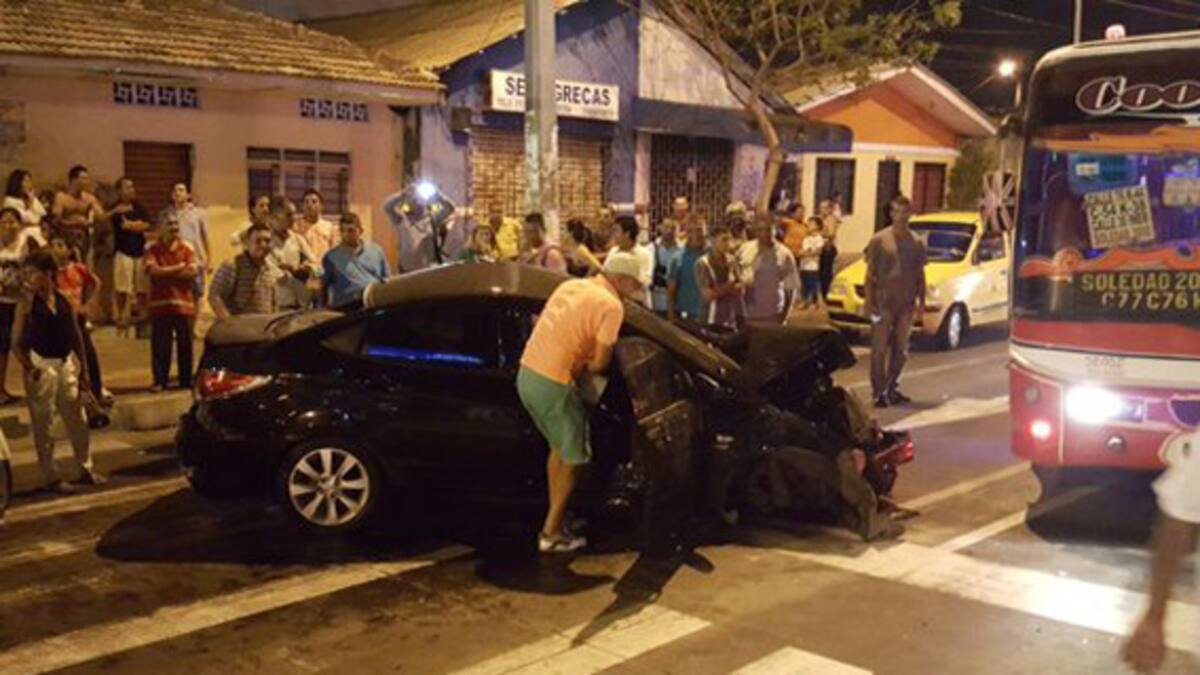 Durante la noche de este martes un articulado del sistema masivo de transporte, Transmetro, chocó con un vehículo Hyundai, en la calle Murillo con carrera 24.