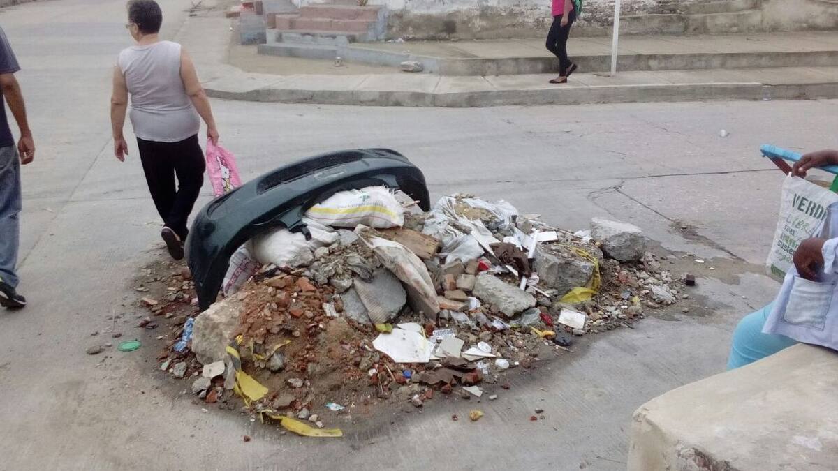Cerca de dos meses lleva, según vecinos de la carrera 16 con calle 24 del barrio Las Nieves, en el suroriente de Barranquilla, un escombro que un contratista de la empresa Triple A dejó en la vía.