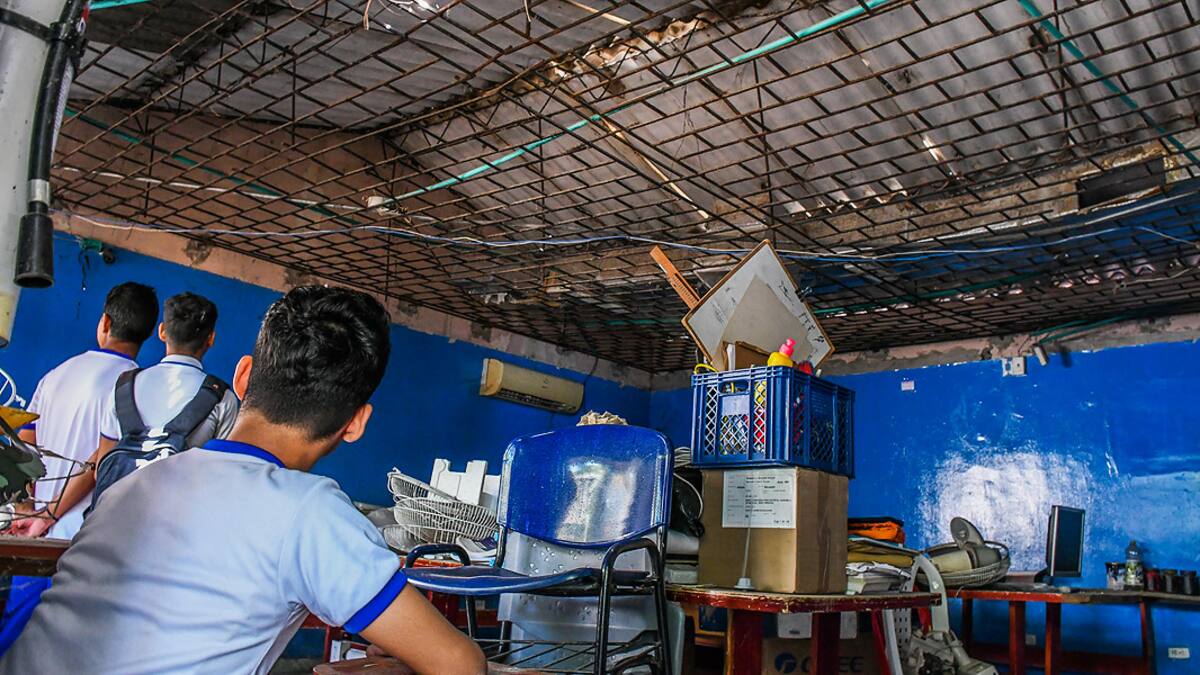 Durante el recreo, un grupo de estudiantes jugaba a las afueras de la sala, cuyas puertas están cerradas. Cuando el profesor de informática abrió el portón del salón, la misma cerradura tuvo que ser forzada para ingresar. Adentro parecía más un cuarto de San Alejo que un aula de clases.