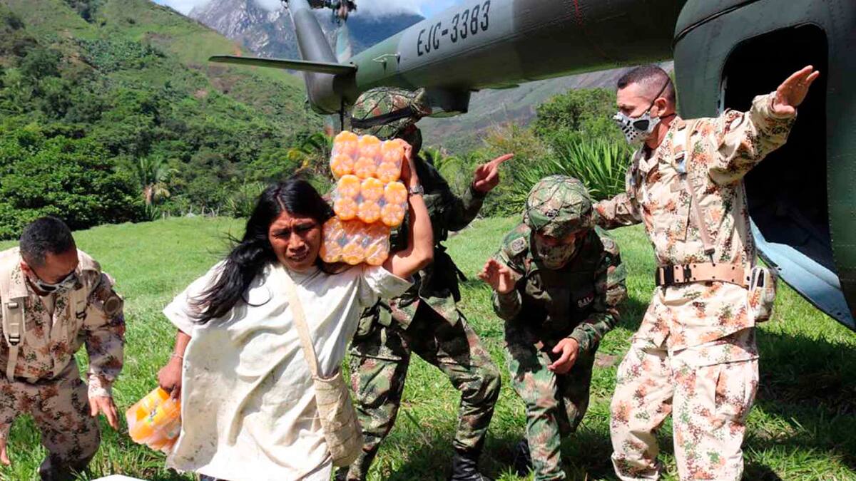 La Primera División del Ejército entregó ayuda humanitaria a los indígenas Kogui asentados en la Sierra Nevada de Santa Marta, donada por el Ministerio del Interior.
