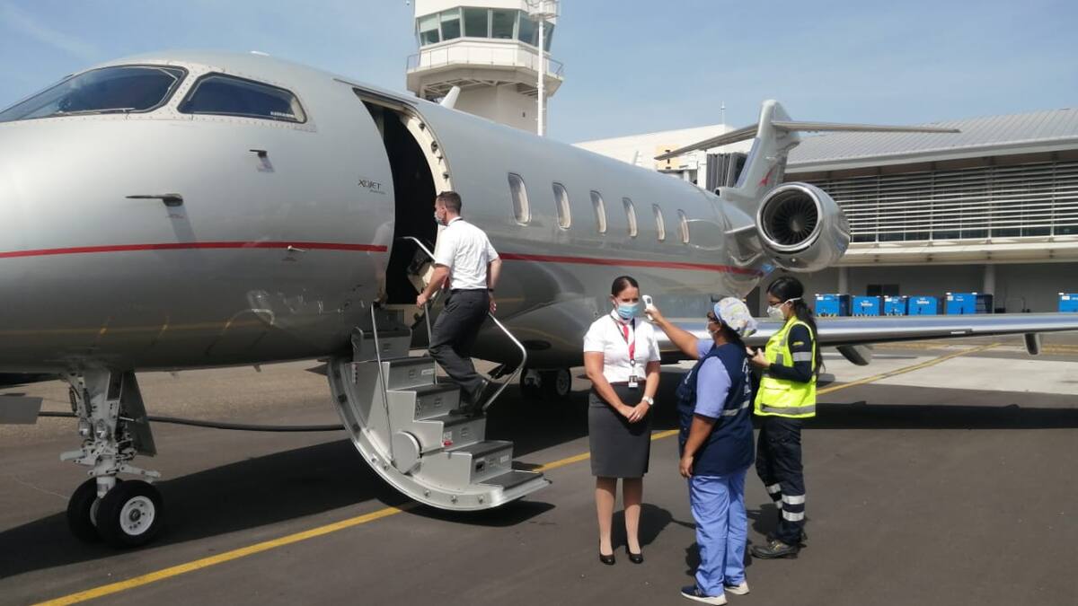El avión aterrizó a las 9:00 de la mañana en el aeropuerto local y de inmediato, el equipo de Sanidad Portuaria de la Secretaría de Salud Distrital, con el apoyo de Servicios Médicos Aeroportuarios, practicaron un tamizaje y las encuestas al capitán, al copiloto y al auxiliar de vuelo, para verificar el cumplimiento de los protocolos de bioseguridad de la aeronave y sus tripulantes.