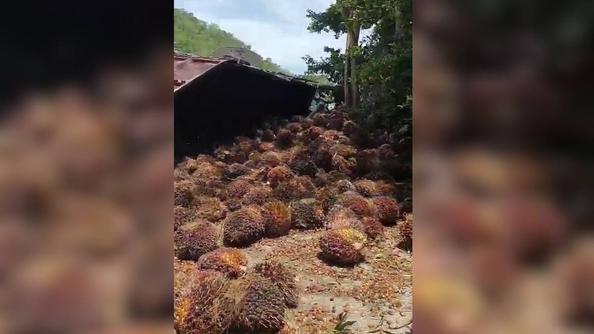En la mañana de este sábado 24 de mayo, una tractomula cargada con palma de aceite se volcó en Vía Alterna, en Santa Marta. El conductor resultó herido.