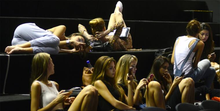 Mientras esperan su turno para probar la pasarela, las modelos se relajan jugando con sus ‘smartphones’.