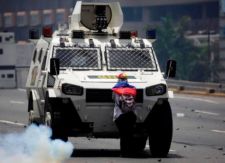 Envuelta con una bandera venezolana, María José Castro bloqueó el 19 de abril la pesada embestida de un blindado que dispersaba a los manifestantes en la principal autopista de Caracas.