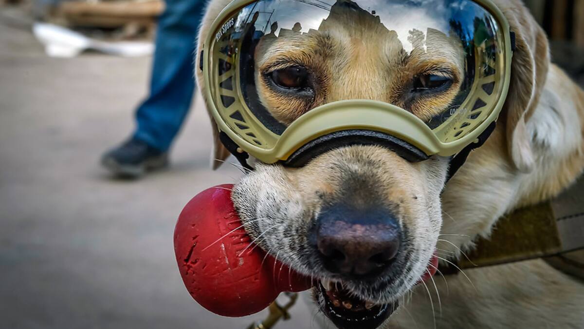 Con las gafas protectoras bien ajustadas bajo sus orejas peludas y botines todo terreno en sus cuatro patas, Frida agita la cola mientras escala las montañas de escombros que dejó el terremoto del martes en México, rastreando señales de supervivencia humana con su agudo olfato canino.