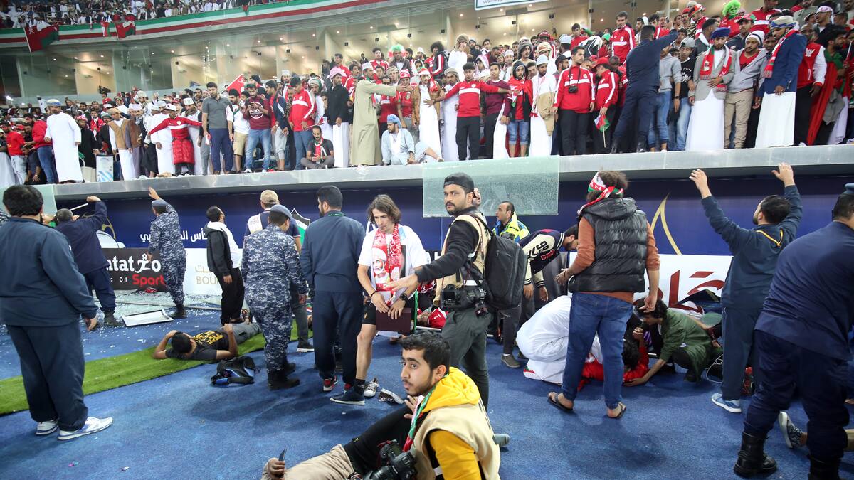 Once personas resultaron heridas el viernes por la caída de una barrera del estadio de Kuwait City, al término de la final de la Copa del Golfo de Naciones de fútbol, que midió a Omán con Emiratos Árabes Unidos, confirmó a la AFP la organización de la competición.