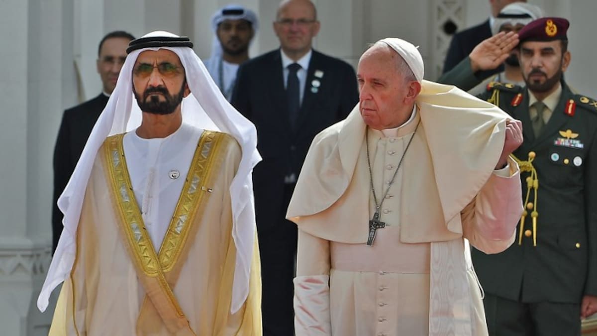 En la primera visita que un Papa hace a la península arábiga, Francisco se vio en serios aprietos para sacarle el quite a la fuerte brisa en la ceremonia de bienvenida de este lunes en el Palacio Presidencial de Abu Dabi (Emiratos Árabes). Una brisa tan fuerte como la que por estos días sopla en Barranquilla.