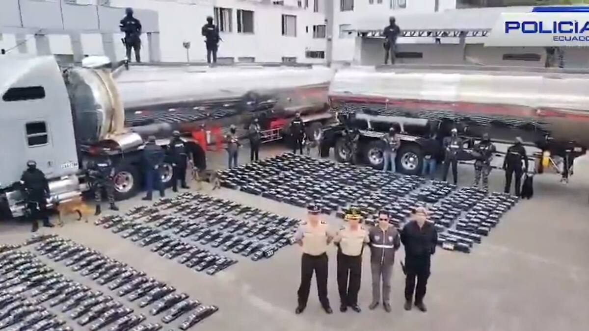 Más de 2,3 toneladas de cocaína fueron decomisadas este jueves en la frontera de Ecuador con Colombia, tras ser descubiertas dentro de dos camiones cisterna que habían ingresado a territorio ecuatoriano al volante de dos ciudadanos colombianos que quedaron detenidos, según informó la Policía Nacional de Ecuador.