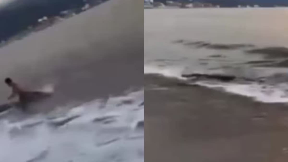 El animal se acerca entre la espuma de las olas al sujeto, ante la mirada de los demás turistas. En cuestión de segundos, los otros visitantes alertaron al hombre, quien logra salir ileso del agua y resguardarse.