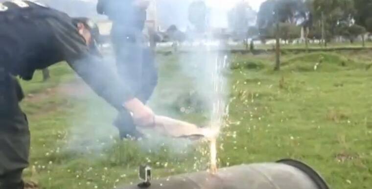Los ejercicios se realizaron al aire libre, a temperatura ambiente de 14 grados centígrados y con apoyo de mecha lenta, para retardar la activación. En un área despejada, los cuatro elementos fueron asegurados a diferentes objetos, que en todos los casos terminaron destrozados o quemados, como podría ocurrir si cualquiera de los artefactos pirotécnicos, impacta alguna parte del cuerpo humano.