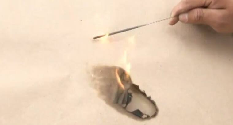 Un martillo fue ubicado dentro de una manzana roja. La detonación prácticamente desapareció la fruta. Apenas un pequeño residuo apareció a dos metros del lugar del ejercicio. Los estragos ocasionados podrían entenderse como los efectos nocivos que generaría este tipo de pólvora en músculos. En otra práctica, los técnicos pusieron una mecha bajo un vaso de vidrio. La activación destruyó el recipiente. Los cristales quedaron esparcidos y tomaron un color opaco. Algo similar a lo que ocurriría si golpea un ojo.