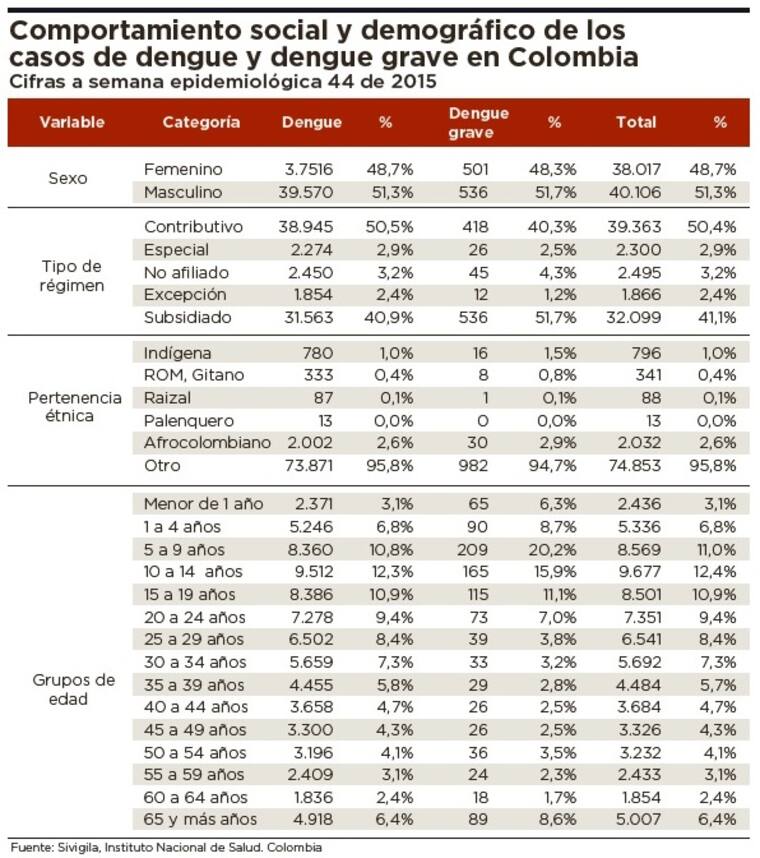 El documento registra la semana epidemiológica número 44 de 2015, es decir la comprendida entre el 1 y 7 de noviembre, además de los datos compilados de los meses restantes de este año.
