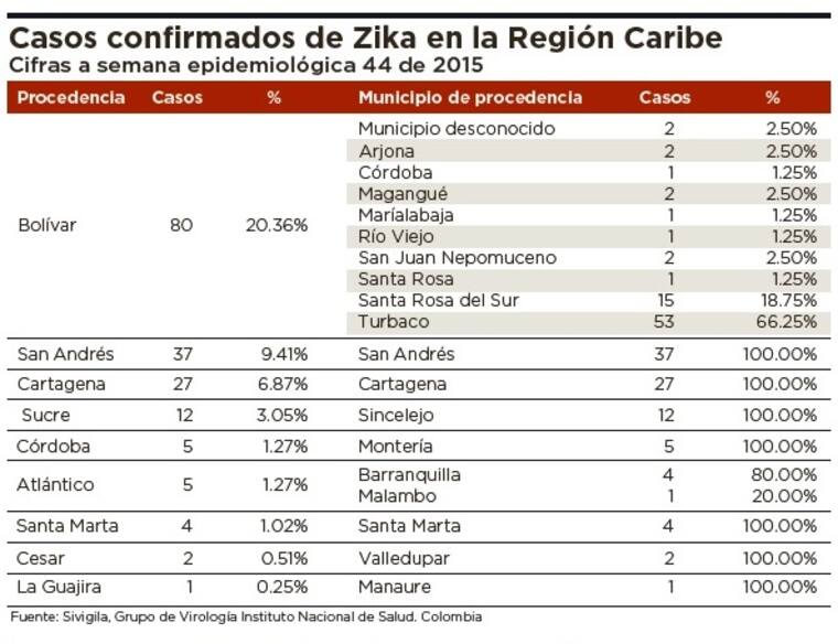 Por esa razón existe una creciente preocupación de las autoridades sanitarias del Atlántico y de Barranquilla sobre una masiva propagación del zika. En esta zona del país el INS confirmó cinco enfermos, sin señalar específicamente el municipio de ubicación.
