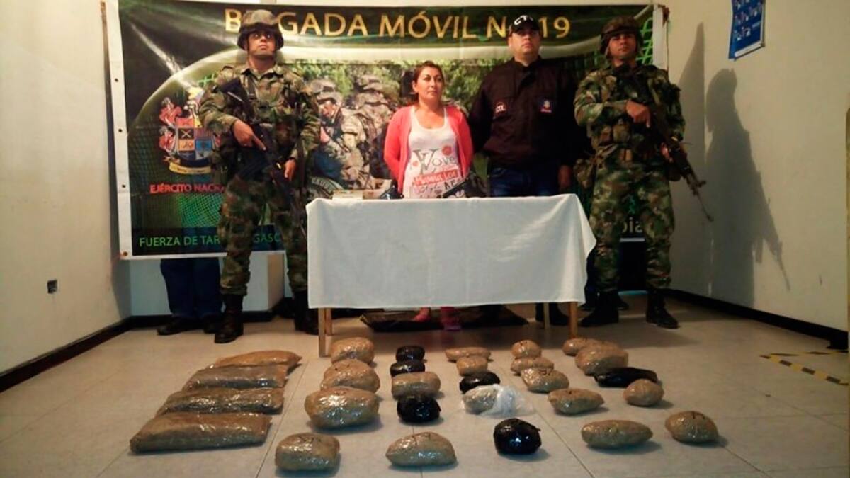 En el operativo, que se llevó a cabo en el municipio de Samaniego, perteneciente al departamento de Nariño, 'se logró la captura de una mujer que tenía en su poder 29,25 kilogramos de pasta base de coca y dos pistolas', indicó la institución en un comunicado.
