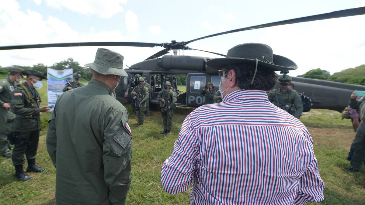 'Desde el sector Defensa tenemos nuestras capacidades listas para que la aspersión aérea sea una herramienta de precisión, completamente acorde a la normatividad ambiental y que nos permita reducir significativamente el área con cultivos ilícitos en Colombia', anotó el ministro de Defensa desde Caucacia, Antioquia, donde estuvo revisando las diferentes modalidades con las que cuenta la Fuerza Pública para la erradicación de cultivos ilícitos.