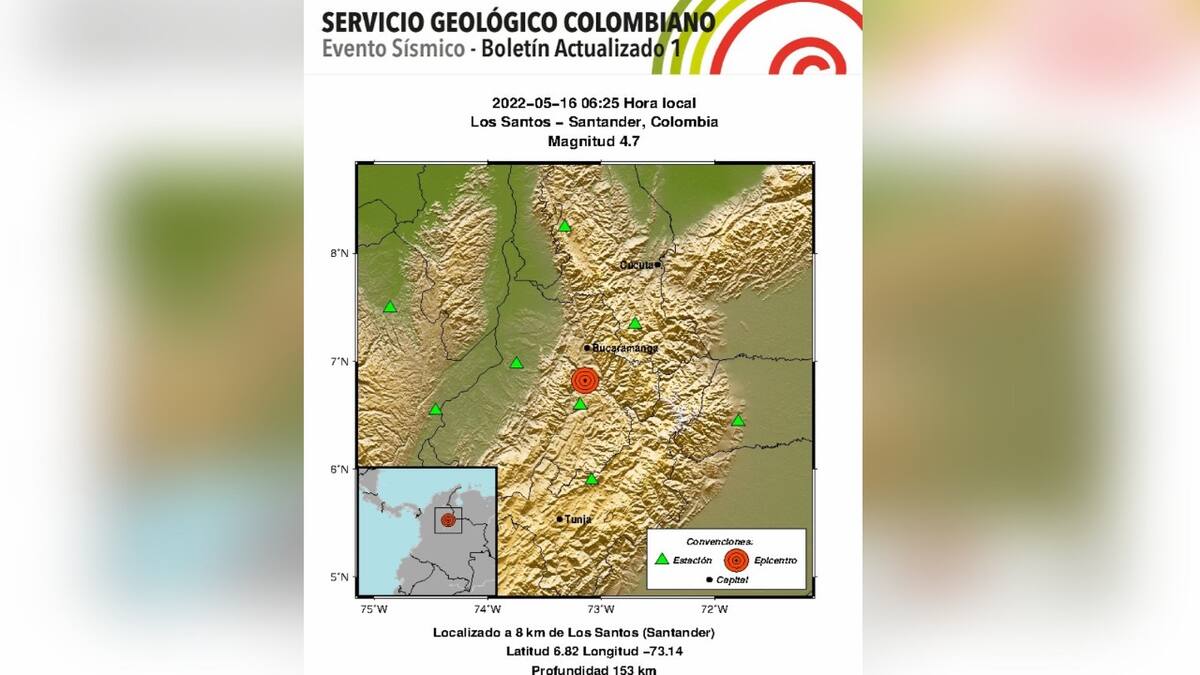 Este lunes un fuerte sismo se registró en el departamento de Santander. De acuerdo con el Servicio Geológico Colombiano el movimiento telúrico fue de 4.7 grados en la escala de richter y tuvo su epicentro en el municipio Los Santos.