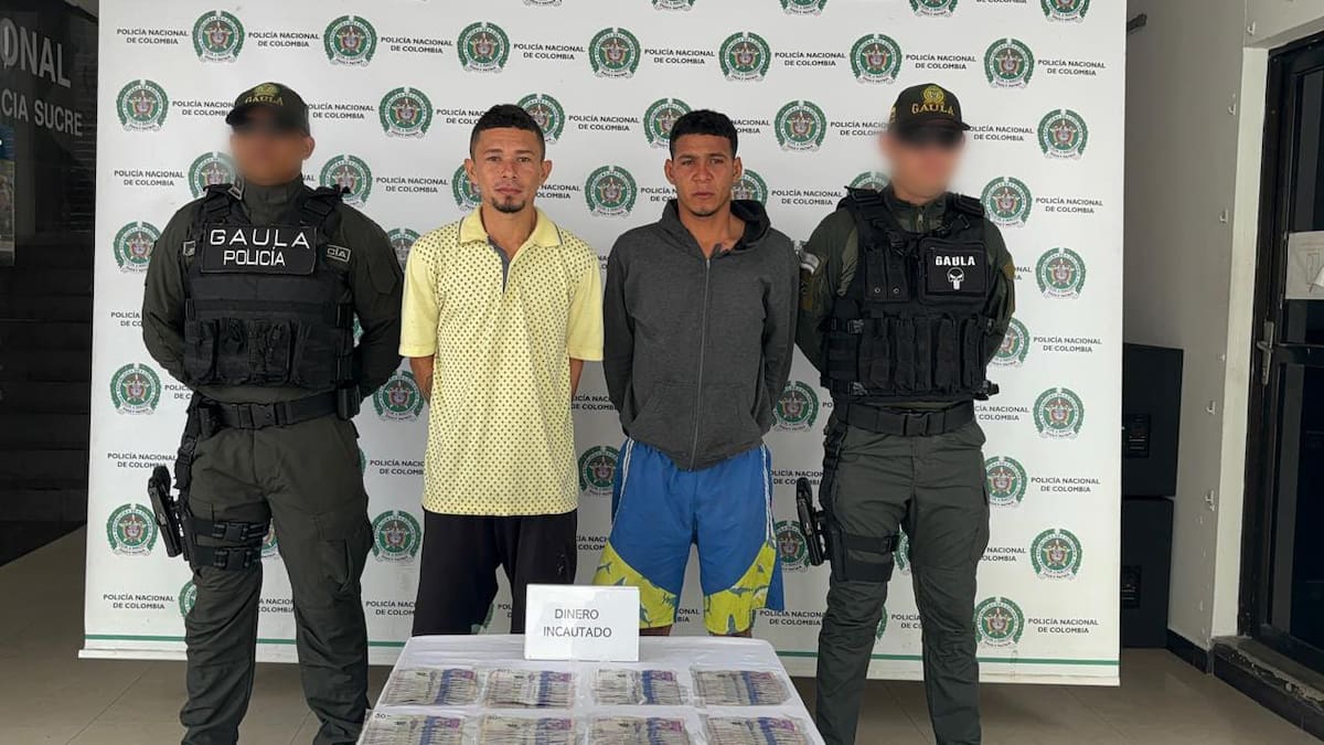 En el marco del Plan Integral “Todos unidos contra la extorsión y el secuestro” las unidades del Gaula de la Policía de Sucre aprehendieron a dos presuntos integrantes del grupo armado organizado ‘los Norteños’ o ‘Resistencia Militar Sucre y Norte’ (RMSN), en momentos en los que cobraban una extorsión.