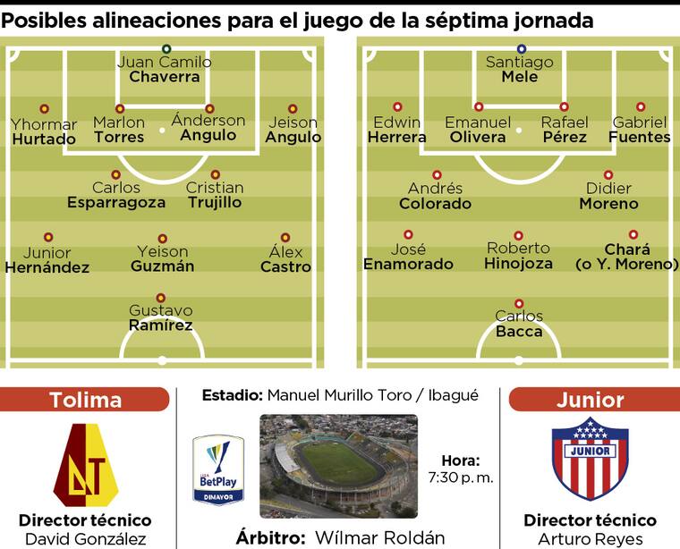 Rafael Pérez, que resultó expulsado infantilmente frente a Colo Colo, tomaría el lugar de Peña. Emanuel Olivera, que tenía una molestia en un pie, jugaría a su lado en la zaga. Howell Mena estará en el banco de suplentes. El argentino Nicolás Zalazar, emergente frente al club chileno, no viajó a Ibagué. Tampoco ‘Cariaco’ González ni Marco Pérez.