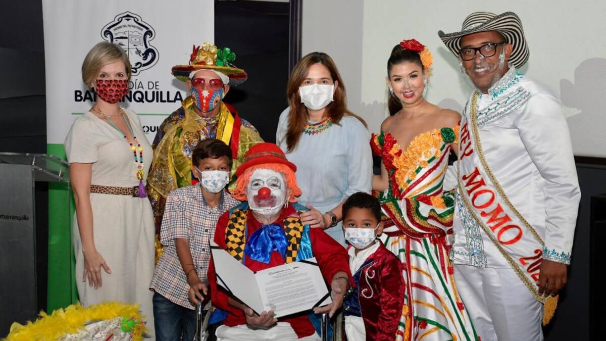 José Fernando Herrera, el ‘Payaso cara sucia’ hizo su aparición, llamando la atención de los presentes que evidenciaron su llegada en silla de ruedas vestido con su tradicional sombrero rojo y peluca salmón, con sus labios extravagantes, una nariz roja y una cara pintada de blanco que le dan vida a su personificación. Portando una sonrisa que, se mantuvo intacta, llegó acompañado de su esposa, nietos e hijos que no dejaron de manifestar el orgullo ante la exaltación que le fue otorgada.