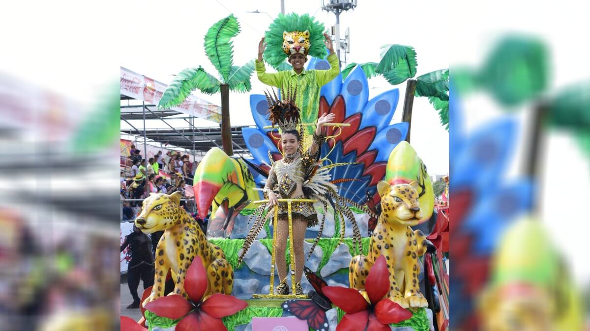Los soberanos se gozan el desfile de la Gran Parada de Tradición con sus coloridos trajes y en la carroza ‘Victoria Amazónica’.