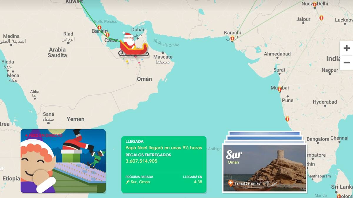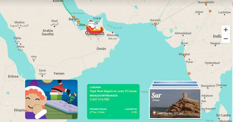 Puede ver cuántos regalos ha entregado en lo que va en su recorrido y las horas que faltan para que llegue a su domicilio.