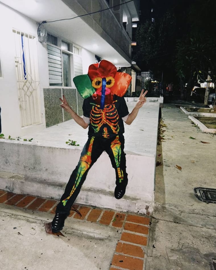 La barranquillera y sus pequeños se camuflaron entre la comparsa ‘Palo e’ Muerte’, un colectivo conocido por su estética de esqueletos danzantes.
