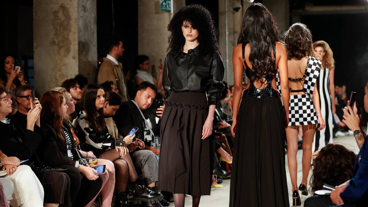 Colores intensos como el amarillo, el turquesa y el esmeralda dominaron la pasarela, en contraste con bases en blanco y negro sobre modelos de todas las tallas y alturas, vistiendo corsetería, estampados de cuadros, mucho brillo y peinados cardados que recordaban a los años 50.