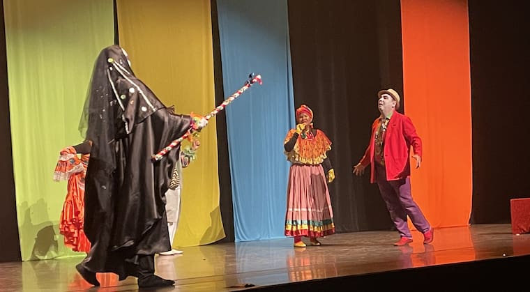 La actriz Andrea Sánchez, de 25 años, vive con emoción la que será su primera salida internacional: “Muchas veces te preguntan hacia dónde te lleva el teatro. Yo ahora puedo responder: me lleva a Mónaco. En la obra interpreto a El Diablo, un personaje travieso, bailador y burlón, que al final regaña a la muerte. Es muy carnavalero y causa mucha risa porque, como soy pequeña, a veces piensan que es un niño quien lo interpreta”.