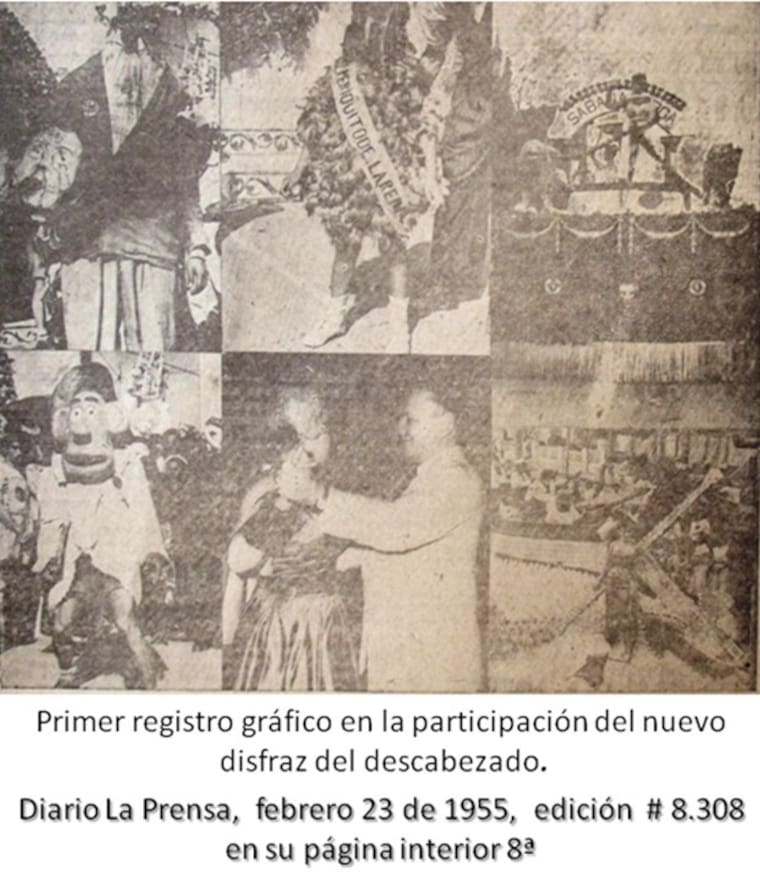 También con mucho orgullo guardaba su primer registro gráfico publicado en el diario La Prensa del día siguiente, fotografiado por el señor Martínez. “La primera impresión de la gente fue buena. El personaje gustó, aunque pocas personas sabían el porqué de ese descabezao”.