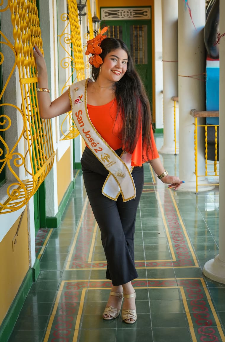 – ¡Hola! Soy Karla Soñett Vega, reina popular del barrio San José 2, ubiquémonos en el espacio más carnavalero y alegre de la casa.