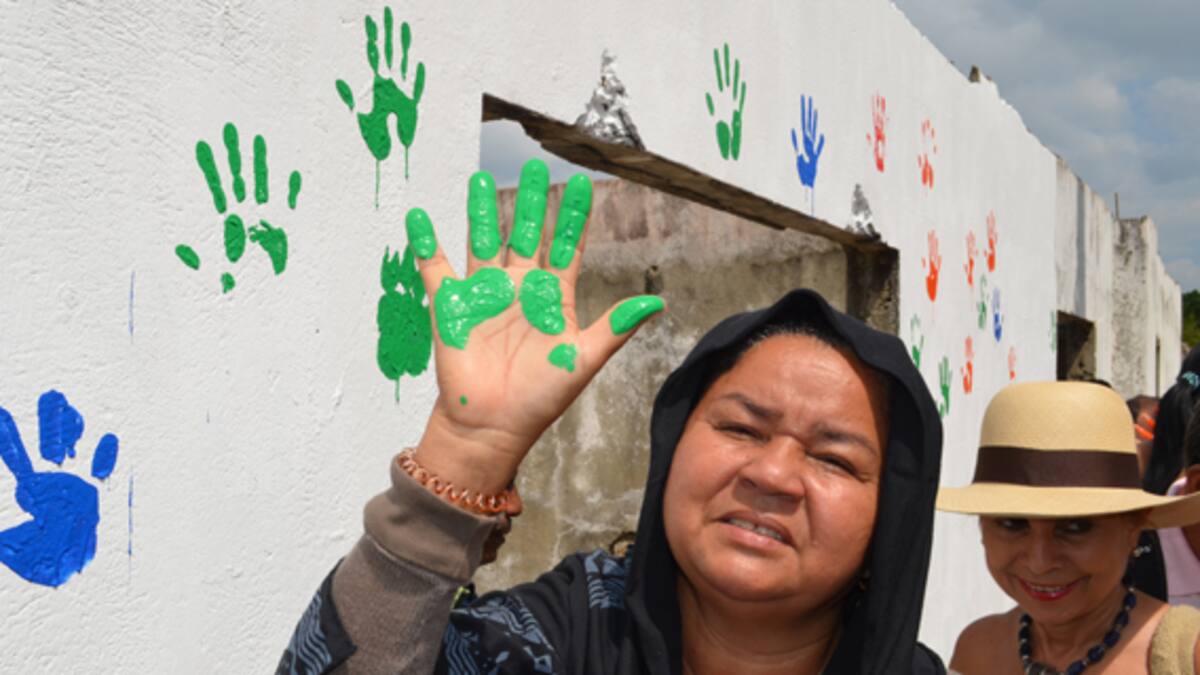 La mayoría de los habitantes de Chengue pintaron sus manos de varios colores para plasmarlas en la pared. Y en los mensajes escribieron 'Esperanza', 'Fe‚ y 'Amor'.