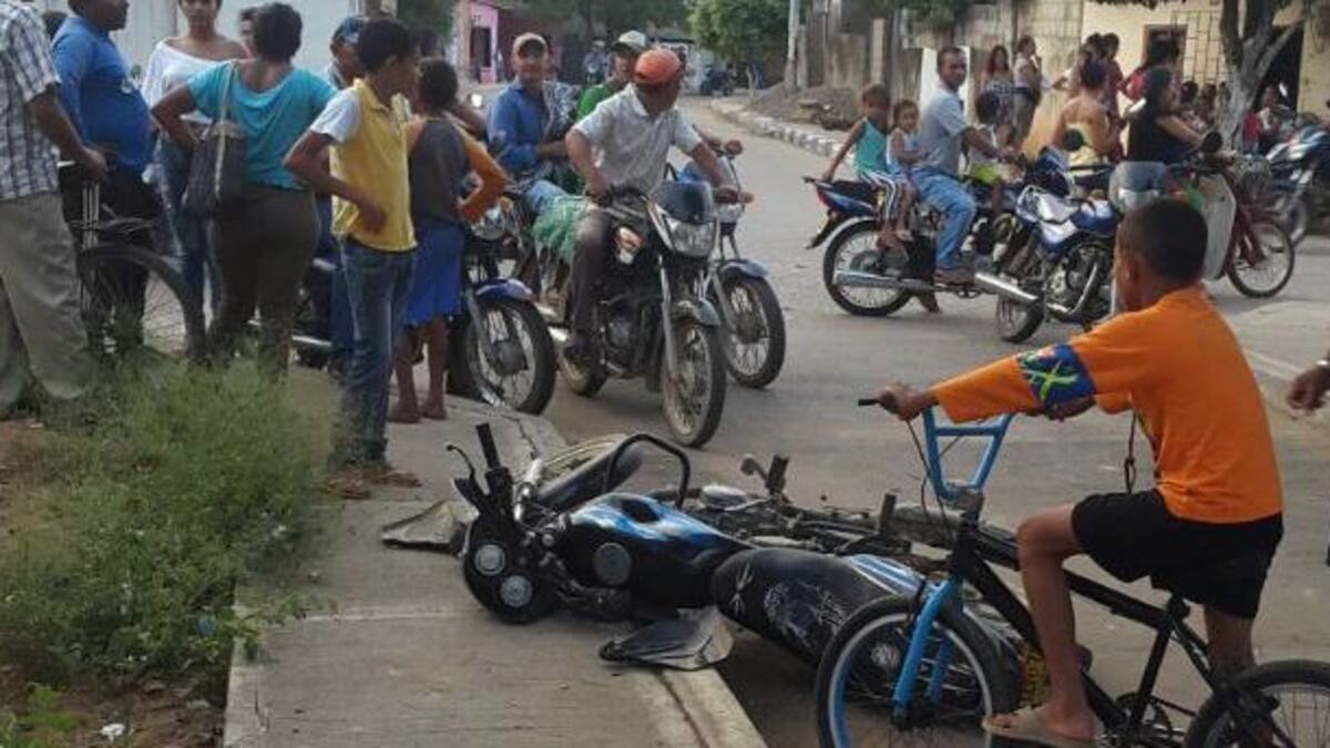 Según el reporte de la Policía Nacional, el evento vial se registró a las 4:45 de la tarde en la calle Alameda de esa población y a raíz de este resultaron heridos Adith José Galván Royeth, de 23 años, conductor de la motocicleta que tuvo una fractura en la pierna izquierda; su compañera sentimental Tatiana Uparela, con una fractura en el brazo izquierdo y una niña de 10 años que tiene trauma craneoencefálico.