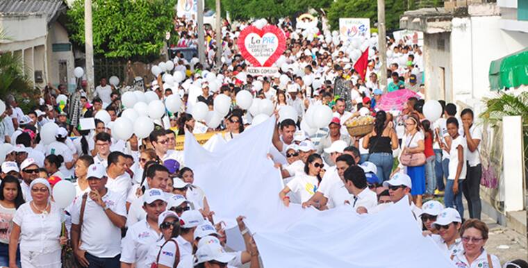 Más de mil 500 personas de la Sabana de Sucre le dijeron sí a la paz. En medio de ese mar blanco conformado por mujeres, hombres y niños, estaba Eduardo Támara, El pregonero de la paz.