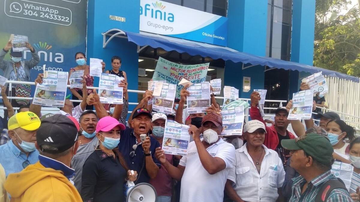 Sin importar el fuerte sol de la tarde de este martes los líderes comunitarios, vocales de control y miembros de la Asociación de Usuarios y Defensores de los Servicios Públicos de Sucre (Asousuarios) protestaron en las afueras de la empresa Afinia, en el barrio Majagual de Sincelejo.