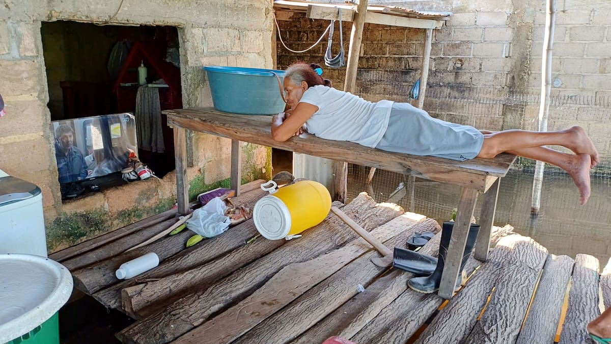 “Hay que estar pendientes de dónde es que ellos van a pisar para que no se caigan a las aguas porque eso sería una desgracia, se ahogan porque esto está bastante profundo, a los grandes nos da casi al hombro y ya ocurrió en otro pueblo de acá hace dos semanas con una niña de 2 años”, relata la señora que dejó de verse un capítulo de su telenovela favorita para denunciar el “abandono horrible” al que los tiene sometidos el Gobierno nacional.