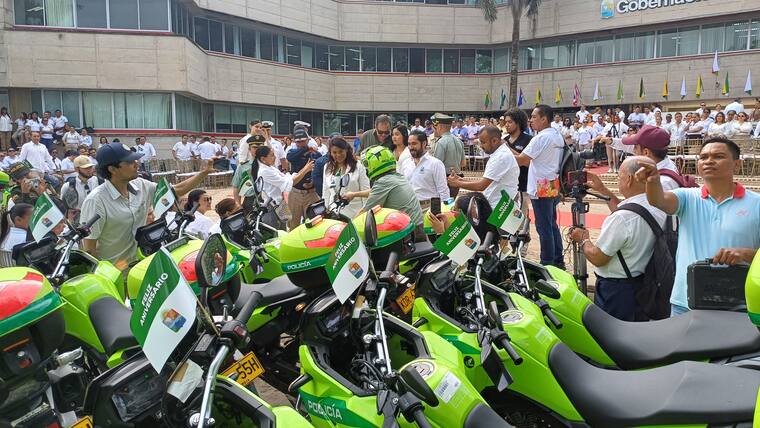 A la par la mandataria de los sucreños le entregó una dotación, representada en 28 motocicletas, una patrulla y una camioneta a la Policía, además de otros medios de transporte similares a la Armada Nacional, Migración Colombia y a la Oficina Anticontrabando del departamento.