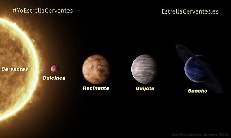 Desde hoy, el sistema planetario µ Arae, situado a 49,8 años luz de distancia en la constelación de El altar (Ara), puede llamarse de las dos maneras, por su nomenclatura científica o por sus nuevos nombres: Cervantes, Quijote, Rocinante, Sancho y Dulcinea.