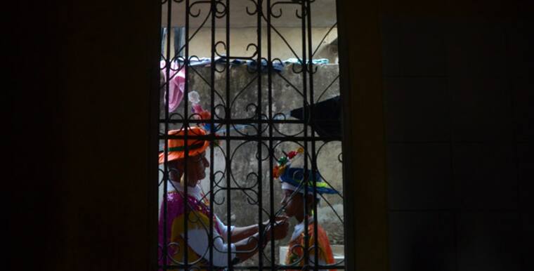 La mañana de la Gran Parada de Tradición ponen a punto sus atuendos. Afuera suenan tambores de guerra, percusiones que con cada golpe invocan a sus antepasados mientras los hombres adentro se ponen las faldas amplias con estampados de flores multicolores que van encima de un pollerín, un suéter manga larga blanco llamado ‘amansaloco’, un sombrero decorado con flores en la parte frontal, aretes largos, una gola en el pecho y un paraguas que mueven al compás de la música, pero el Mama lleva además en la muñeca derecha un ‘perrero’, un látigo de varias puntas con el que llama al orden a los bailarines.