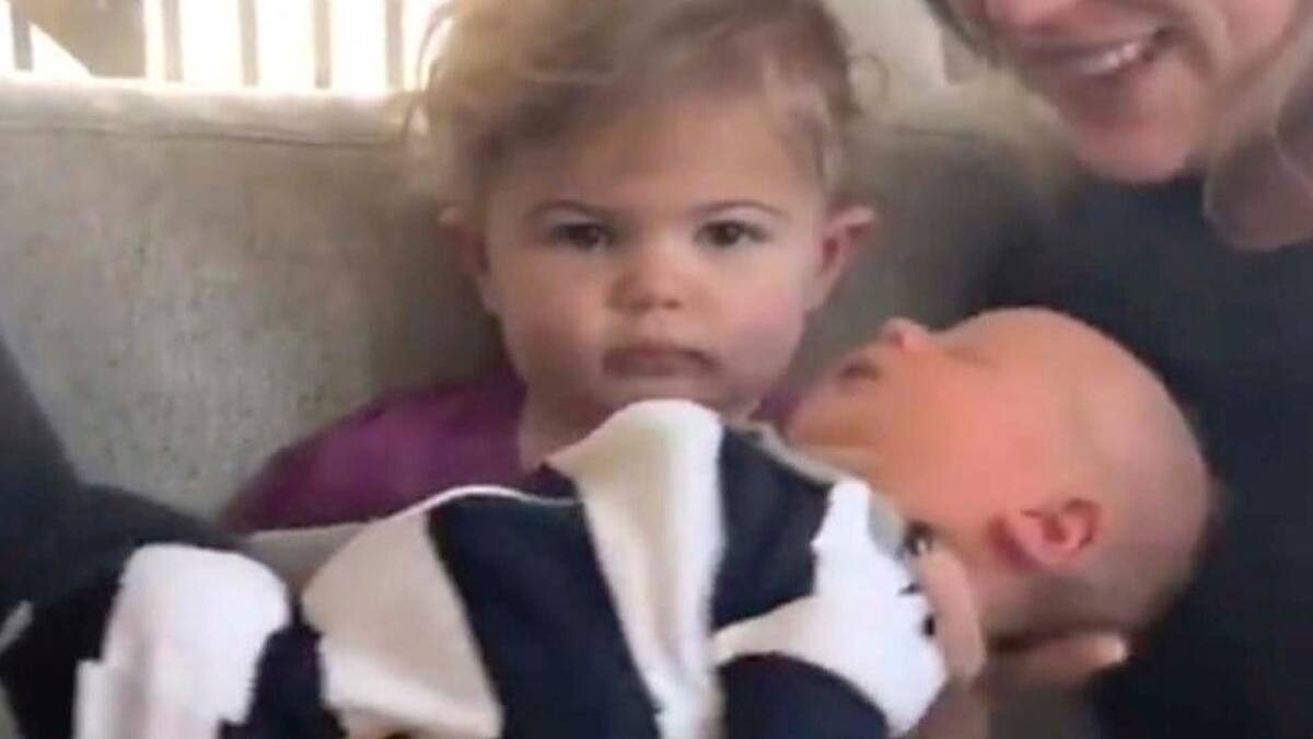 La llegada de un hermanito puede generar muchas reacciones en los más pequeños de la casa. Sin embargo en este caso la reacción de la pequeña parece inmutarse que de repente solo opta por mirar fijamente al frente, como si la presencia del recién nacido no le importara.