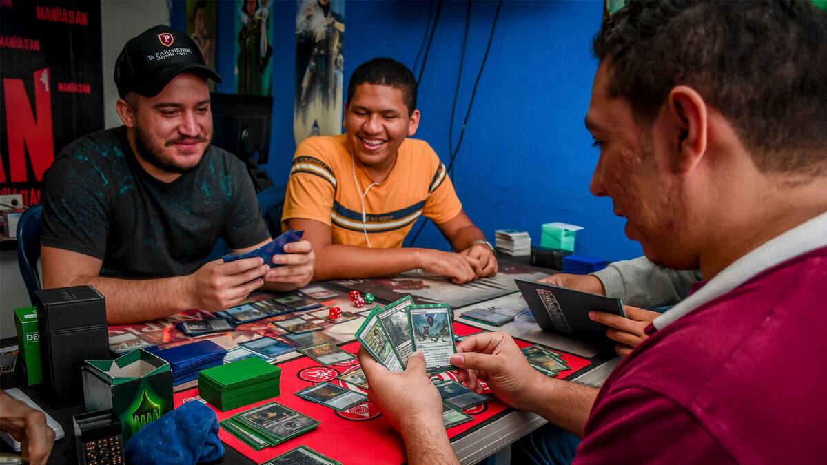 El sonido de las cartas al golpear la mesa solo era opacado por sus risas. Un viernes, a las cuatro de la tarde, siete jóvenes se encontraban en una tienda de juegos para retarse los unos a otros en Magic, un juego de cartas coleccionables diseñado en 1993 que hoy está tomando fuerza en la comunidad friki barranquillera.